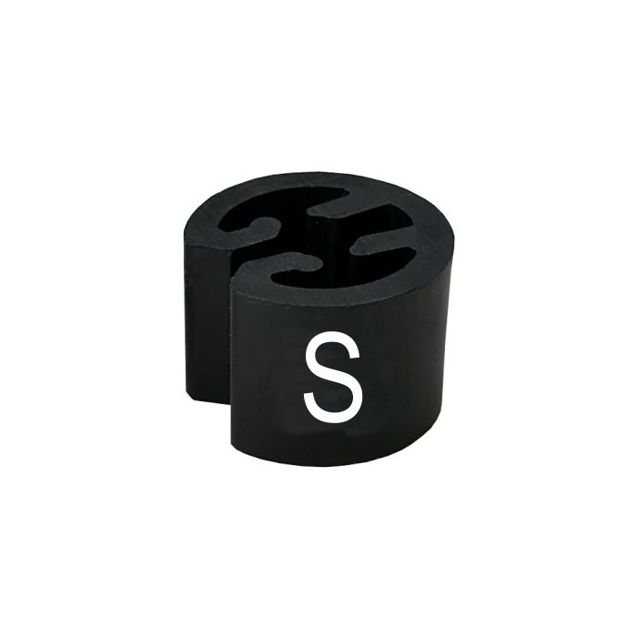 Größenreiter MINI Ø13mm für Kleiderbügel schwarz, Prägung weiß "S"