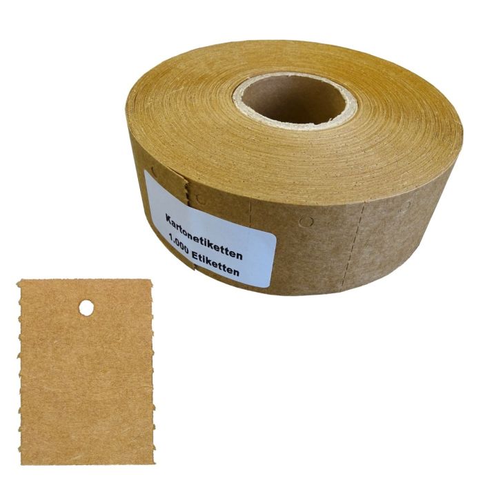 Kartonetiketten auf Rolle 30x40mm brauner Umweltkarton / Kraftpapier
